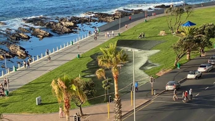 Have you noticed a portion of the Sea Point promenade cordoned off and a man spray painting grey and black across the grass? If you were wondering what it is, it is the beginning of Stage 9 of an international art exhibition by the artist Saype.
