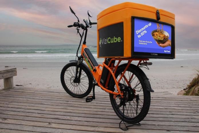 Pathway Cycles owns a fleet of environmentally friendly electric bicycles, each fitted with a Vizicube digital screen box that plays paid-for advertising. It then partners with couriers registered on the Bolt Food platform to deliver food items ordered via the service, giving advertisers mobile exposure while providing a mode of transport with lower running costs.