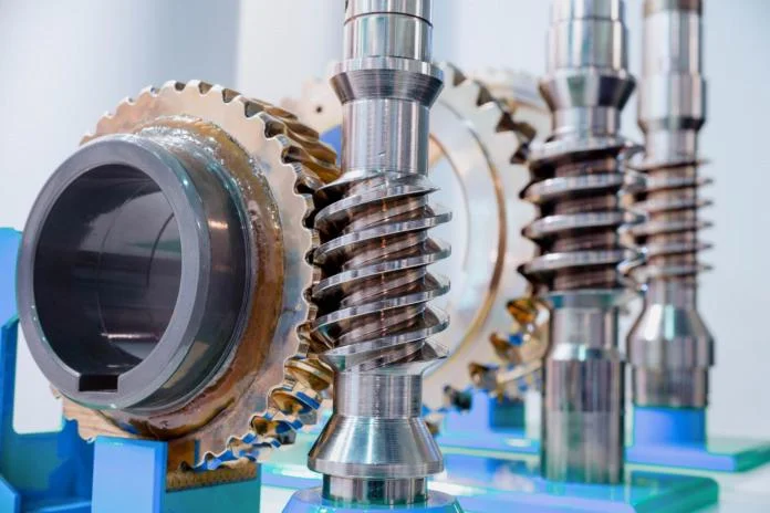 - Worm gears: This gear set comprises the worm and worm wheel or gear. The worm resembles a screw, although it is really a special form of helical gear and its teeth are referred to as threads. The worm is usually made of hardwearing steel. The worm wheel, which resembles a helical gear, should be of a good bearing bronze. The worm wheel is throated or curved on the face to partially envelop the driver. Its action in the worm gear is similar to the action of a screw on a nut. Due to the wedge-like action of the worm thread on the gear tooth, the set is relatively quiet in operation. It also provides a very wide range of speed reduction.