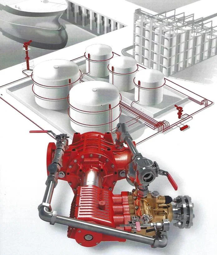 The FireDos product concept allows operators to minimize risks and achieve a reduction in costs while enhancing the performance of an extinguishing system. The purely mechanical concept consists of a water motor and a high efficiency piston pump. Driven just by the water flow, no electricity and no backup power supply are required.