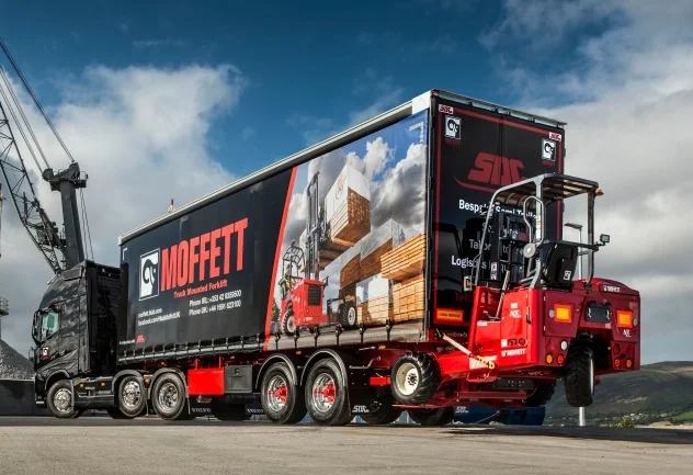 What’s notable about Moffett forklifts is they are compatible with nearly any truck or trailer combination and can be dismantled in under a minute. Another advantage is that this truck-mounted forklift fits conveniently at the rear of a truck or trailer, taking up minimal precious load space.