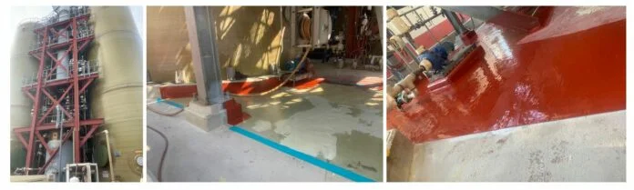 Once the screed was sufficiently hardened, Plasmet AR3 was applied at 1 200 -1 500 microns. The coating was applied in two to three coats, mixing in an aggregate for non-skid in the high traffic areas. As we have seen in many other applications, the Plasmet AR3 is unaffected in the presence of all concentrations of Sulphuric Acid – it was the ideal solution for this project.