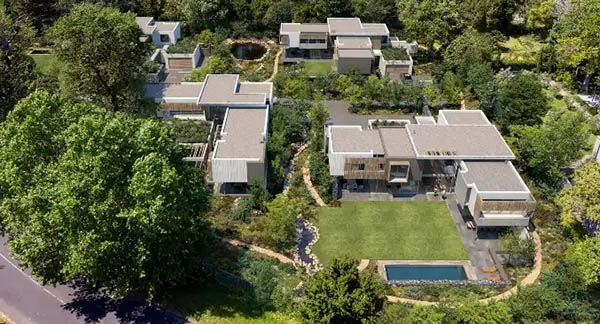 โThe Estatesโ infrastructure, landscaping and architectural design are all informed by environmentallyย responsible decisions. The estate has a particular aesthetic which is both contemporary and to some degree โnaturalisticโ. The conceptual idea โplaces in natureโ, sums up the design ethos that is expressed through green spaces, ambiguity between inside and outside space, the extensive use of glazing and the use of natural materials. The โbroken downโ architectural massing, whereby the houses are not monolithic but comprise a collection of built elements, forms part of the blending together of the architectural and the natural that is so central to the identity intended for the estate.ย