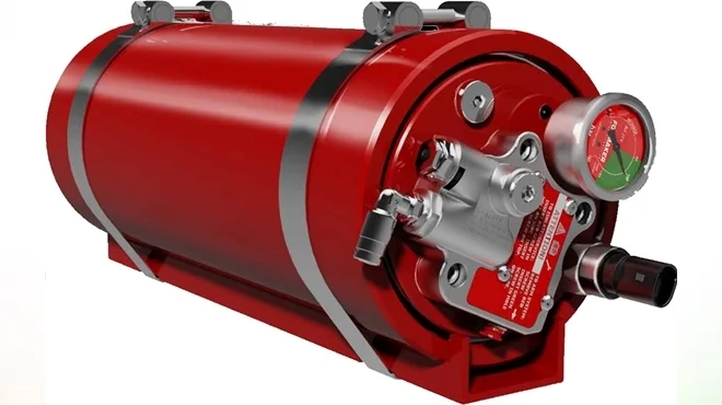 “Equipped with automatic fire detection, which is independent of any power source, this low-weight, low-maintenance system is simplicity itself,” says Russell. “Moreover, there is no powder or mess to clean-up after actuation, which keeps costs and downtime to the absolute minimum. After a discharge, it’s a simple matter of replacing the detector hose and refilling the piston accumulator.”