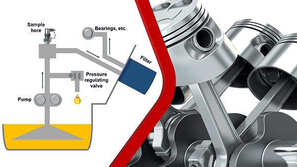 When taking a sample of engine crankcase oil, it is important to avoid contaminating the sample, as with any sample. A good place from which to take the sample is just before the filter. The sampling valve can be inserted between the filter and the pump. It is recommended to use this place as a source for the sample, rather than taking the sample using a vacuum pump with a tube inserted down the dipstick port, or from a drain port.