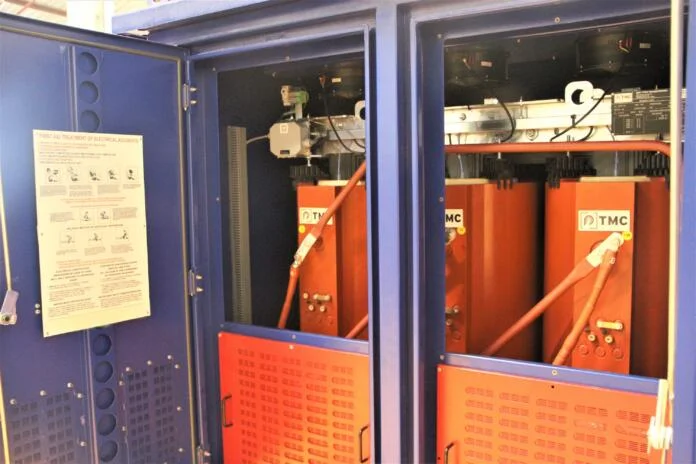 While these two transformers are manufactured in TMC Transformers’ world-class facility in Italy, the design and manufacture of the balance of the mini-substation is carried out in South Africa. This gives Trafo Power Solutions a high level of control over the quality of the final product, says Claassen.