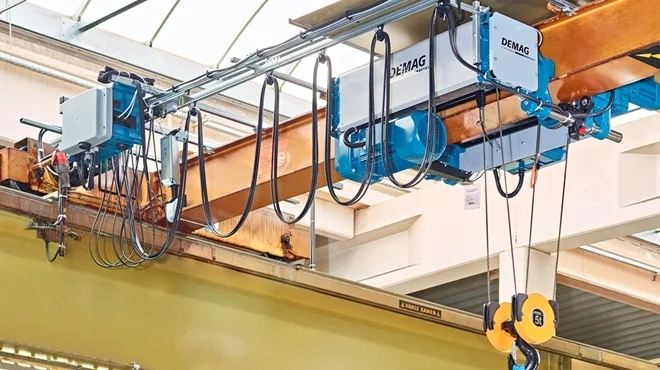 Demag’s Modular Rope Hoist offers many options, such as five different sizes with load capacities of up to 50 tons; a choice of motors; a foot-mounted hoist, low-headroom travelling hoist, double-rail crab or a standard-headroom travelling hoist as well as a smart SafeControl system, conventional contactor control or provided by the customer.