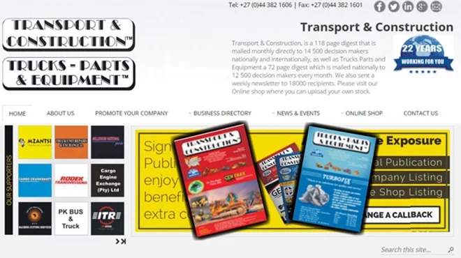 We also offer a Weekly Newsletter. Our Newsletter has grown to 18000+ recipients. Our newsletter helps to keep you up to date with the latest happenings within the industry. As a client of Transport & Construction and Trucks-Parts & Equipment you may send us any company related news or specials to run in our newsletter. Also remember to subscribe to our newsletter so we can keep you up to date with the latest happenings. This is just another valuable service we offer. Keeping every corner covered for our clients.