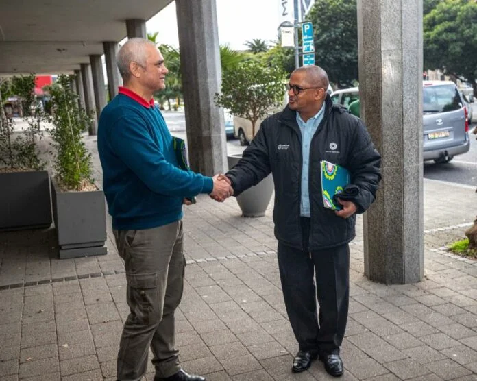 Alderman Grant Twigg (right) confers with with Park Inn Hotel manager Alfonso Van Vuuren
