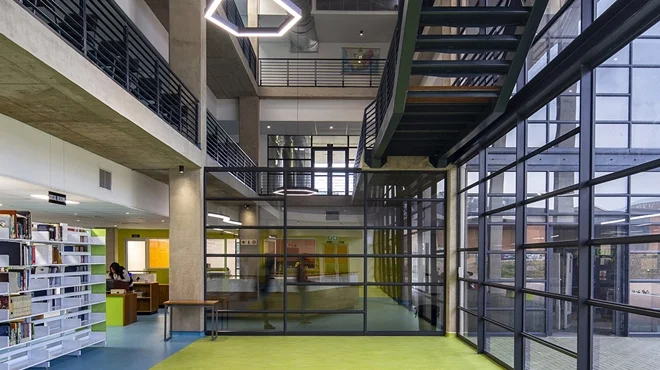Design of the façades and curtain walls ensured that the library block becomes the focal point of the campus. The Engineering Faculty block compromised a 10m x 7.5m support grid with the use of un-bonded post tensioned flat slabs. Stacked lecture venues were achieved with the use of bridge beam design techniques to form a suspended slab over a 15m x 20m room with no internal supports.